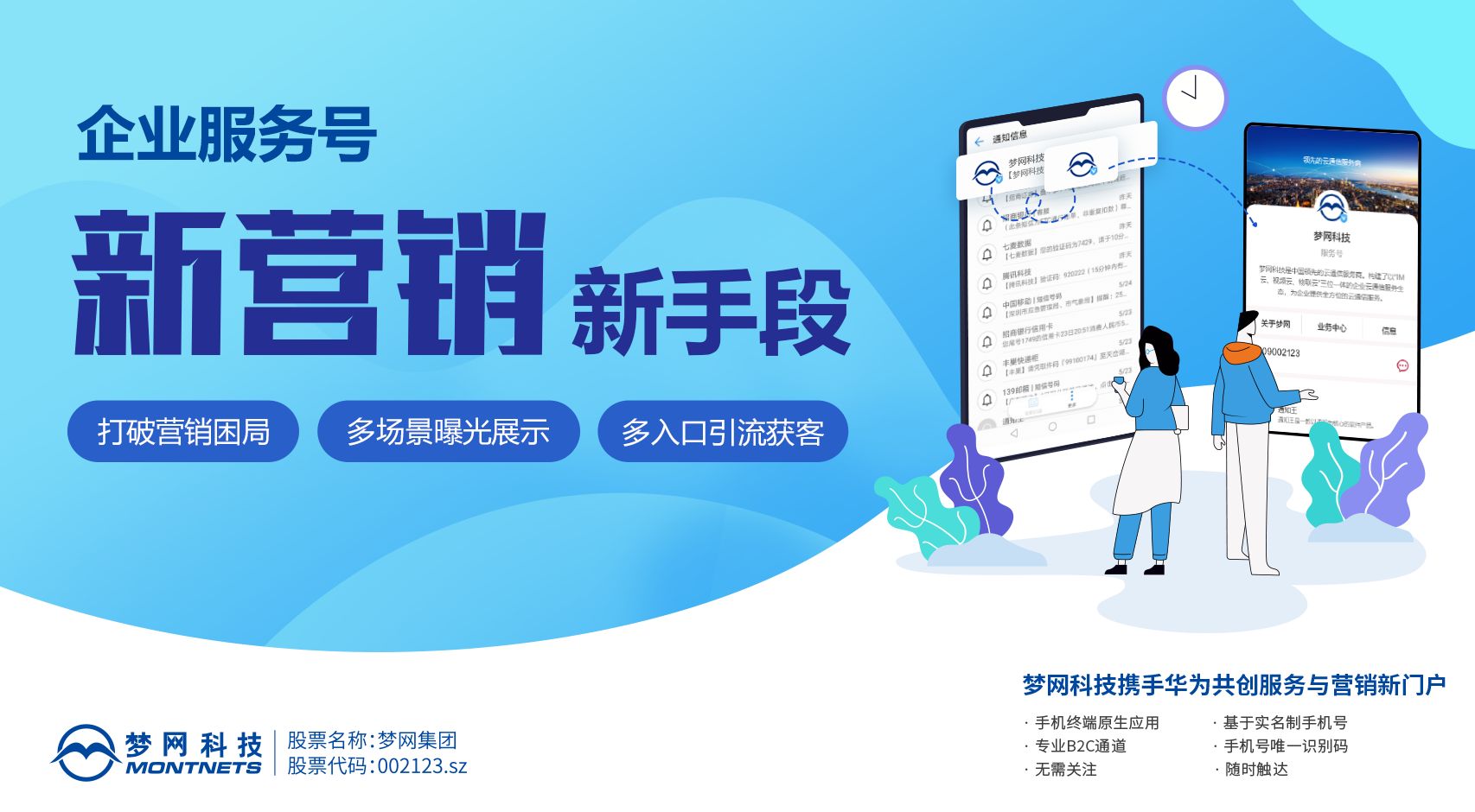 以服务号为例,evo真人视讯服务号顺利获得技术架构创新及功能拓展,形成了短信多媒体化、服务号加V背书及快应用服务三大特色服务功能。商家顺利获得企业logo加V露出品牌信息,提高品牌社会认知度和用户识别度。同时,顺利获得自定义菜单栏和设置链接嵌入可以与快应用服务融合,实现用户到H5、小程序、购物主页等界面的直接跳转,带来直观的流量转化。于用户而言,是更简洁的信息页面呈现和更直观的服务指引,更是无需下载即可在短信界面享受的便捷服务体验。