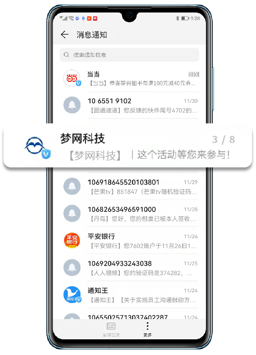 视频短信基于手机收件箱的强触达性,融合视频、语音、高清图片、文字及二维码、链接等多重媒体展现形式,得以让品牌商家的营销信息实现精准直达甚至长效留存交互。此外富信的短链跟踪功能,时刻关注用户动态,紧紧将消费者和产品连接在一起,更能帮助企业在每个营销触点上完善产品和服务。