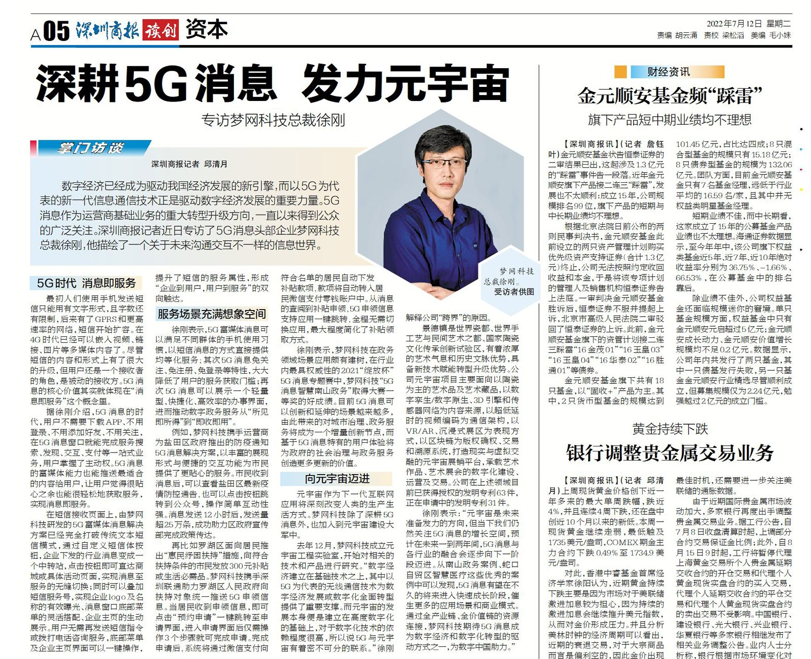 深圳商报专访 | evo真人视讯科技总裁徐刚:开启5G消息第二增长曲线